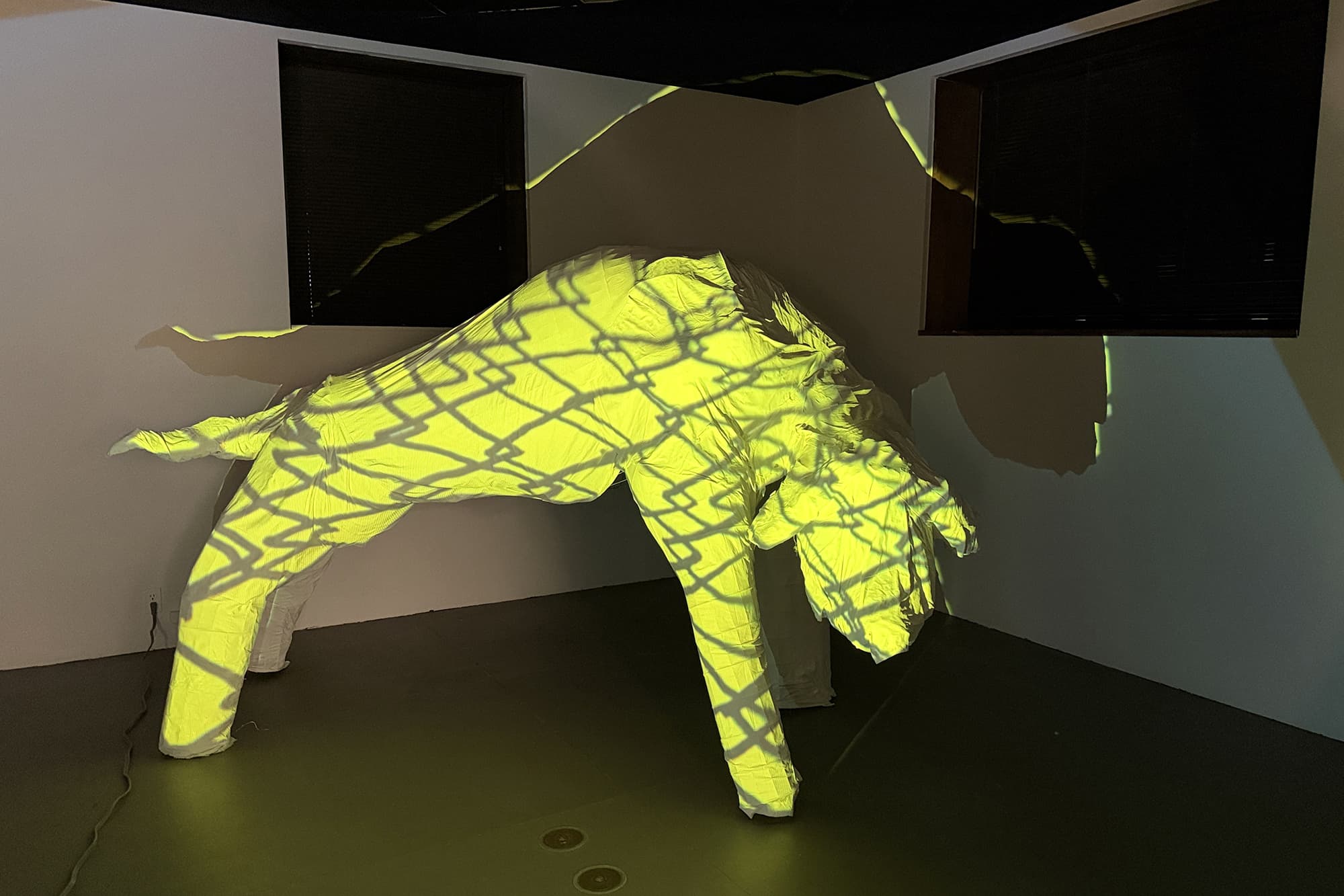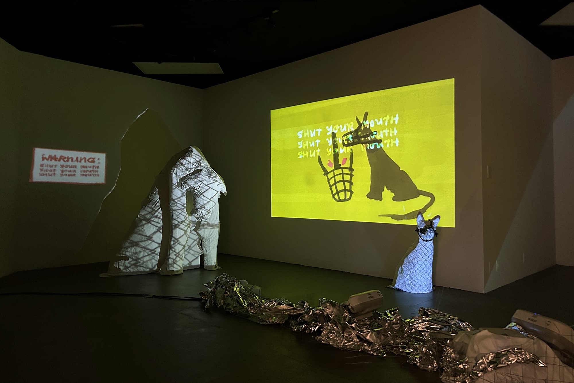 During the residency, the artist will create an immersive installation combining looping animations, sound design, and projection-mapped sculpture. The work will use dark humor and surreal imagery, centered on the recurring image of a muzzled dog, to explore themes of silenced voices, abuse, and complicity in the face of injustice.